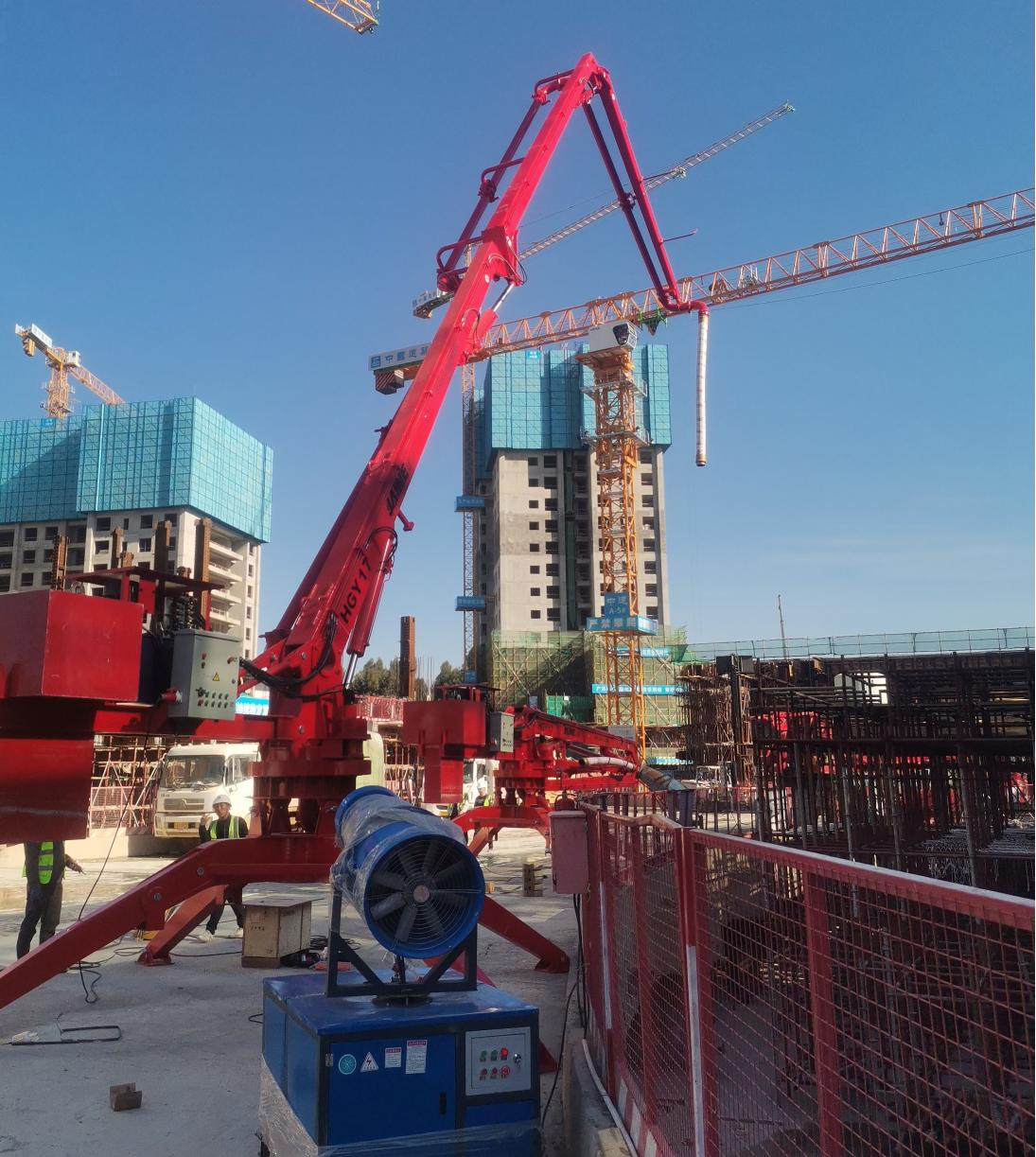 廊坊凱博建設機械科技有限公司研發(fā)的4臺HGY17移動式液壓混凝土布料機(JAINE)在昆明市綜合交通國際樞紐建設項目中亮相。