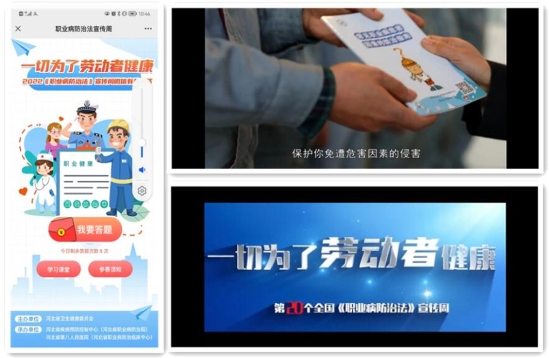 03 推廣《職業(yè)病防治法》宣傳周活動(dòng)展示平臺(tái)及微信答題活動(dòng),在平臺(tái)里員工可以觀看宣傳周主題宣傳片、職業(yè)健康優(yōu)秀作品展等豐富的視頻內(nèi)容,也可以通過[微課堂]及[學(xué)習(xí)課堂]板塊學(xué)習(xí)職業(yè)健康及《職業(yè)病防治法》基本知識(shí)。
