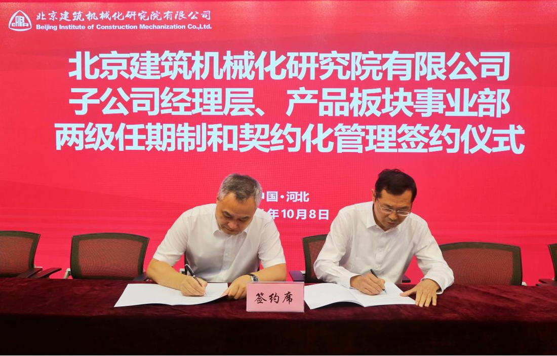 10月8日,北京建機院舉行所屬子公司廊坊凱博建設(shè)機械科技有限公司以及公司所屬事業(yè)部兩級經(jīng)理層成員任期制與契約化管理簽約儀式。北京建機院領(lǐng)導(dǎo)、公司部門以上負責(zé)人等共計80余人參加簽約儀式。